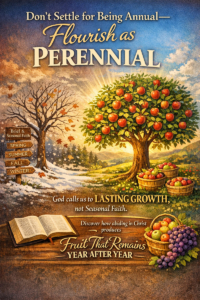 Don’t settle for being annual — flourish as perennial. God calls us to lasting growth, not seasonal faith. Discover how abiding in Christ produces fruit that remains year after year.