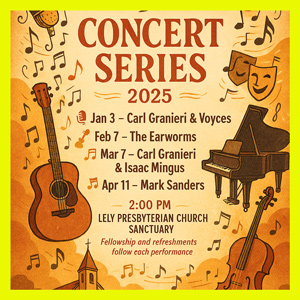 Each program is free to attend, hosted by Lely Presbyterian Church with the generous help of our sponsors. Come enjoy uplifting performances that celebrate music, community, and faith.