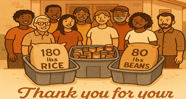 In addition, your cash donations allowed us to purchase an extra 180 lbs of rice and 80 lbs of beans—a tremendous boost to the mission’s outreach.