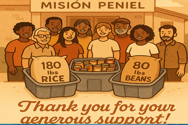 On October 17th, nine of us had the privilege of visiting Misión Peniel, bringing with us the spirit of generosity from our community. Thanks to your incredible support during Cans for Communion on October 5th, we delivered two large bins filled with rice, beans, and canned goods.